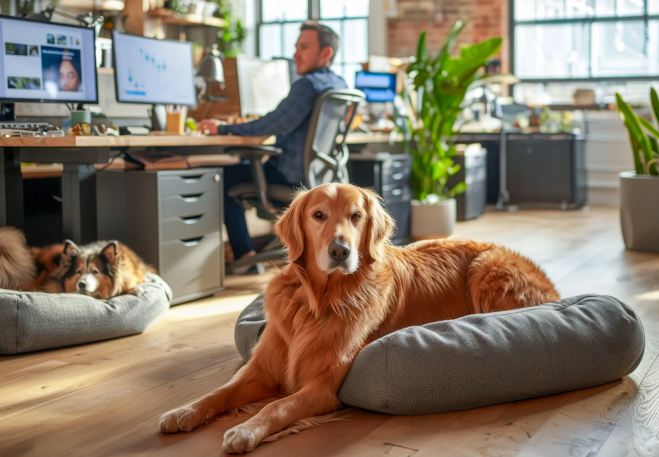 Hunde im Büro machen gesund, glücklich und fördern die Zusammenarbeit. Sie steigern die Arbeitgeberattraktivität und senken die Absenzquote.